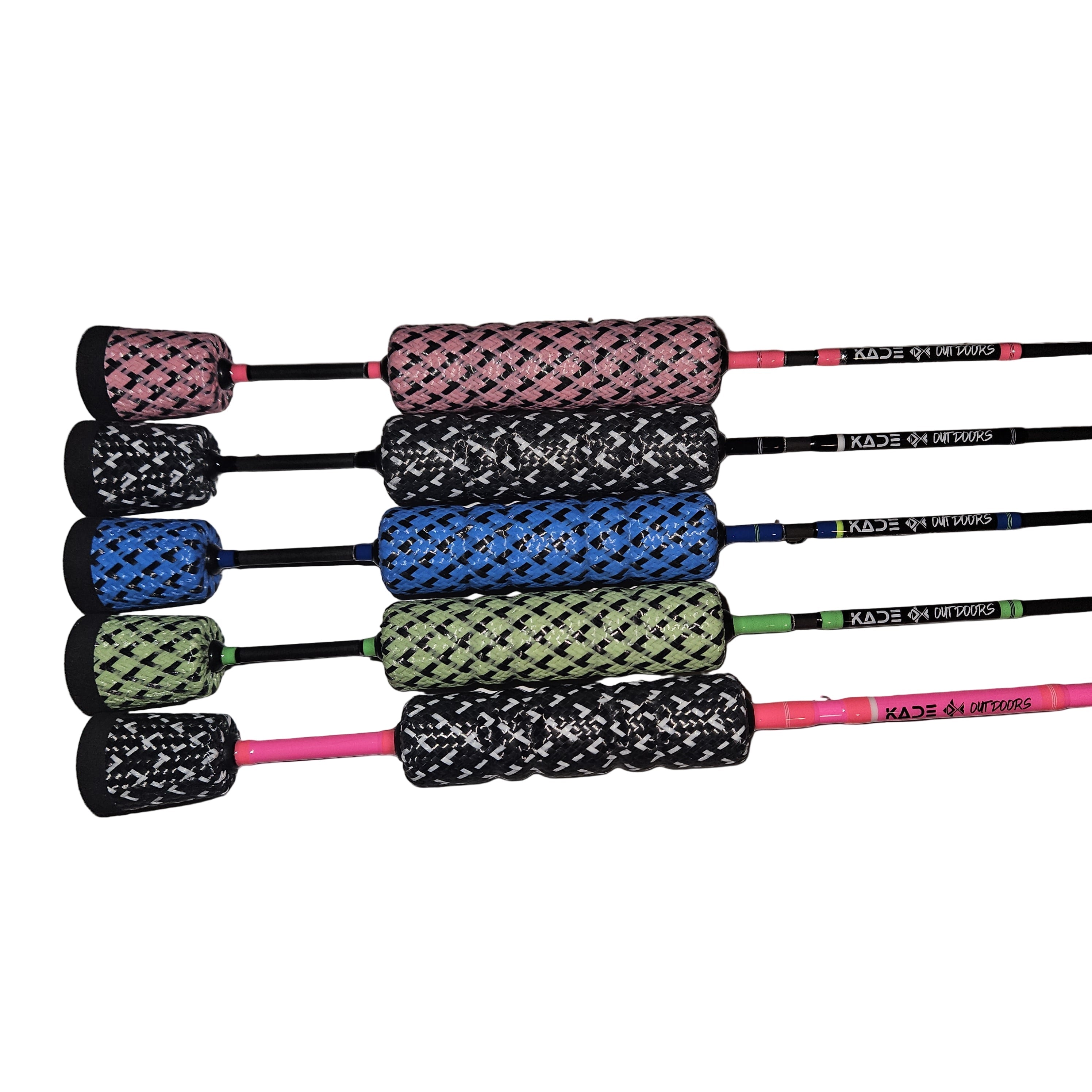 Bring those walleye topside with this medium fast action solid carbon walleye weapon. The rods are equipped with 5" cork, cork split grip or a reel seat have our standard color package with black thread and neon green trim. Black/White carbon fiber grips are wrapped with black main and white trim. Pink carbon fiber grips are wrapped with pink main and white trim. Blue carbon fiber grips are wrapped with blue main and neon green trim. Neon Green carbon fiber grips are wrapped with neon green main thread and white trim.