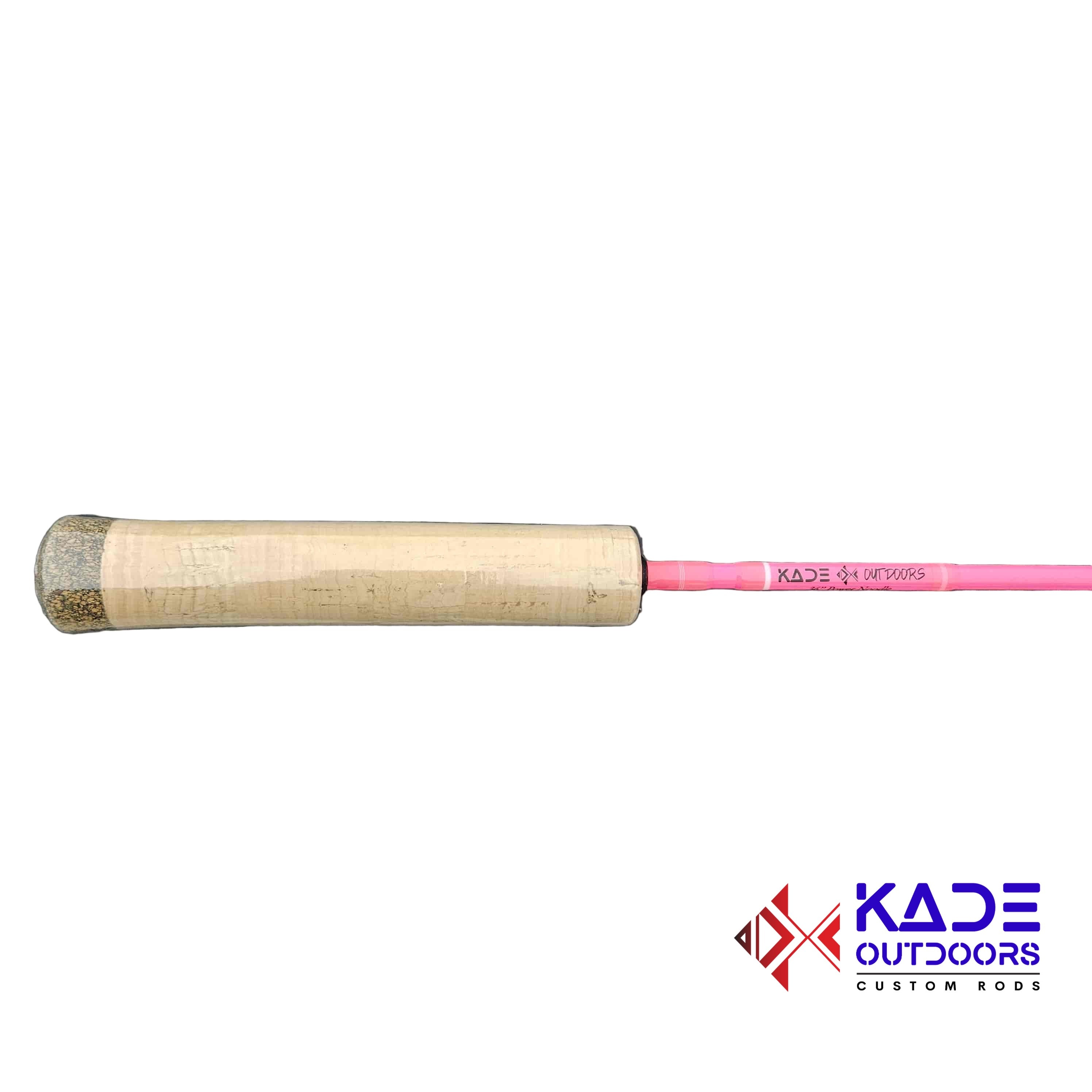 These power noodles are equipped with our hot pink blank and our standard black color SS guides. Your choice of the AAA grade 5" cork, cork split grip or our exclusive carbon fiber spilt grips in black/white, pink, blue or neon Green. Blue carbon fiber grips are wrapped with blue wraps for main color and neon green accent. Neon Green carbon fiber is wrapped with green main and white accent. Cork grips, black and pink carbon fiber are wrapped in pink guide wraps with white accents.
